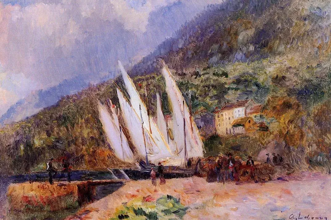 “Boats Docked at Saint Gingolph” is a beautiful oil painting by the esteemed artist Albert Lebourg. This masterpiece showcases Lebourg’s incredible ability to capture the beauty of boats and nature.